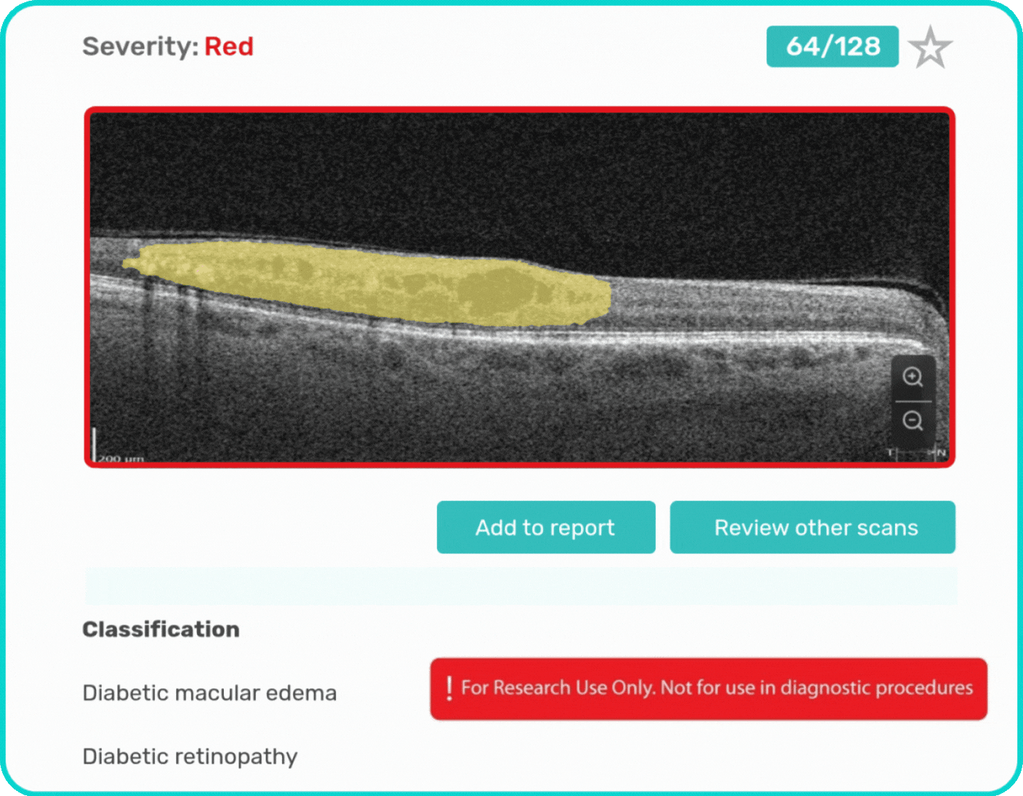 - Automated identification and visualization of imaging features associated with DR to support efficient image-review workflows.